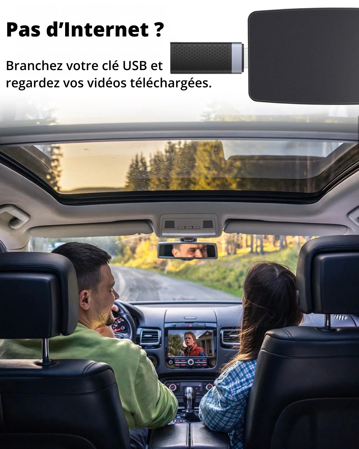 Sans réseau ou à l’étranger ? L'adaptateur lit directement les fichiers stockés sur une clé USB via son port intégré — aucune connexion requise.