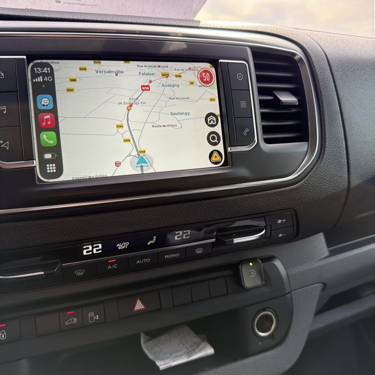 Branchez l’adaptateur sur le port USB : CarPlay se connecte automatiquement sans-fil, via une connexion plus stable qu’avec un câble, permettant une navigation fluide sans fil.